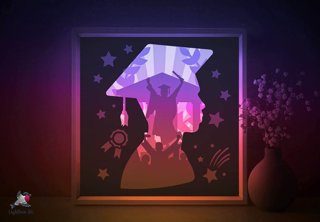 Graduation Shadow Box SVG Template, Graduate Boy Papercut Lightbox ...