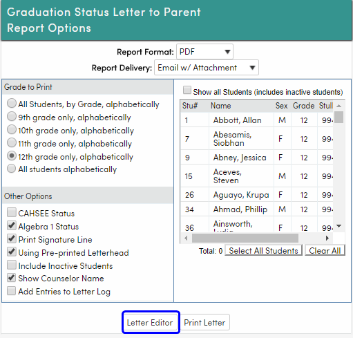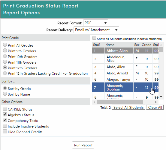 Grade Reporting - Print Student Graduation Status Reports : Aeries Software