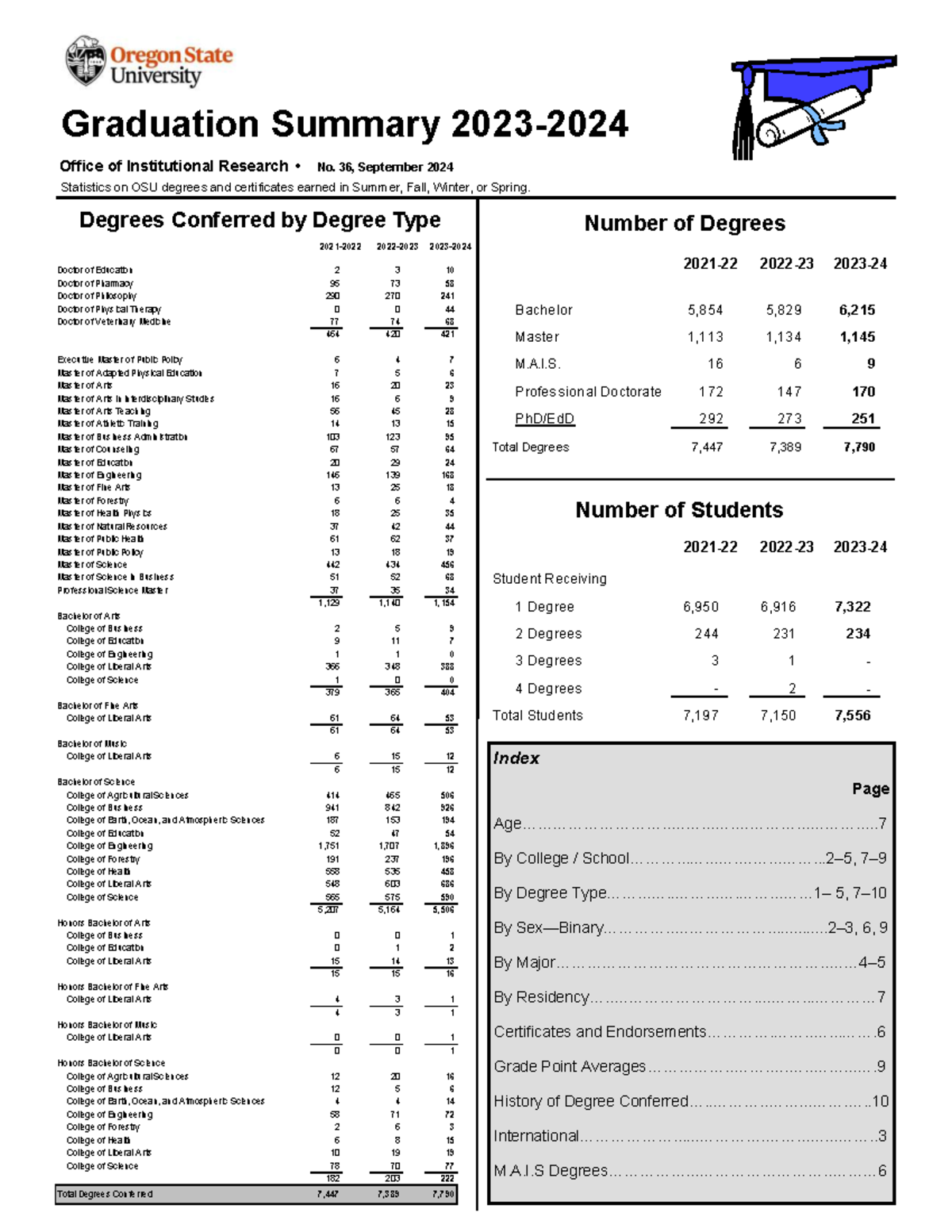 Graduation Summary 2023-2024: Degrees Conferred at OSU - Studocu