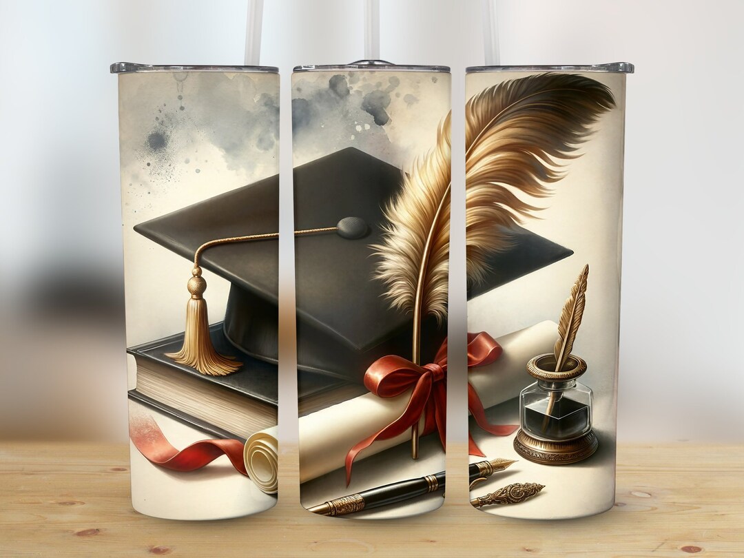 Graduation Themed 20 Oz Tumbler Design, Academic Cap and Quill, Tapered ...