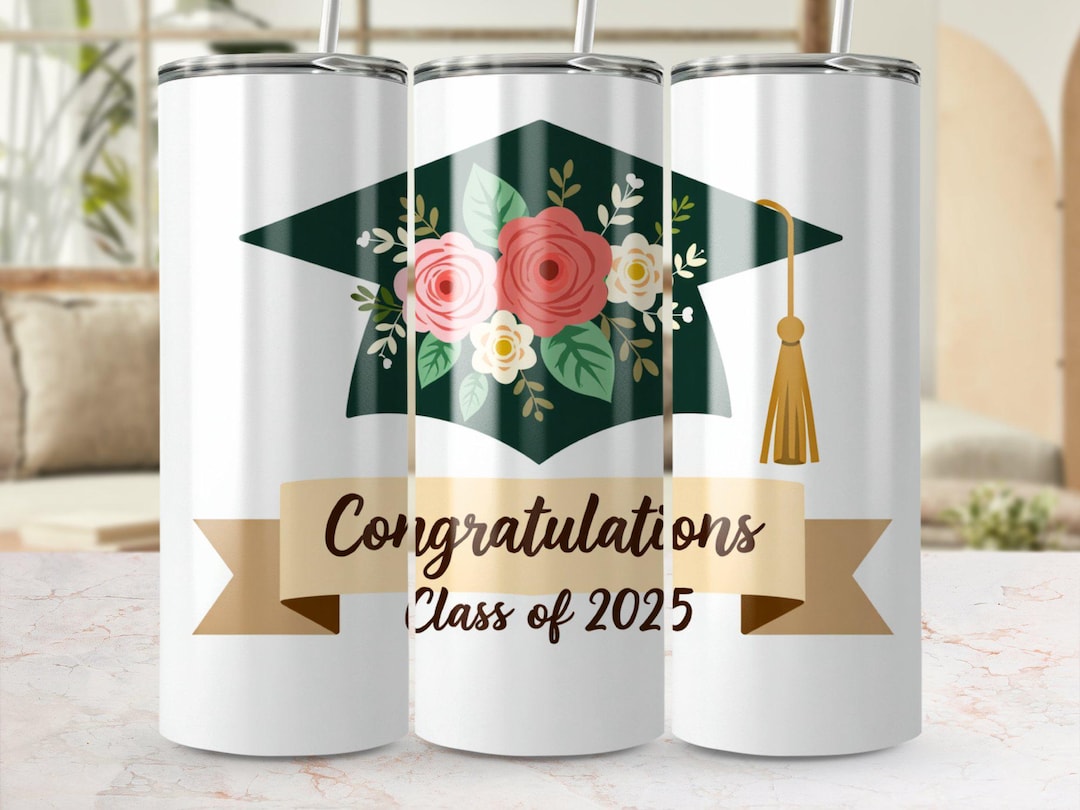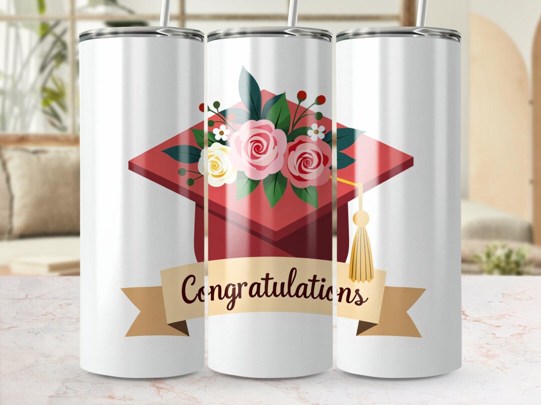 Graduation Cap With Floral Congrats PNG, 20oz Straight and Tapered ...