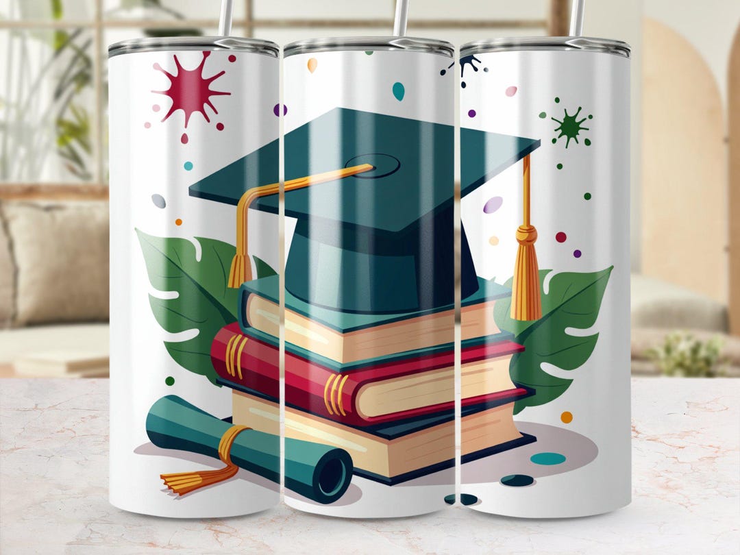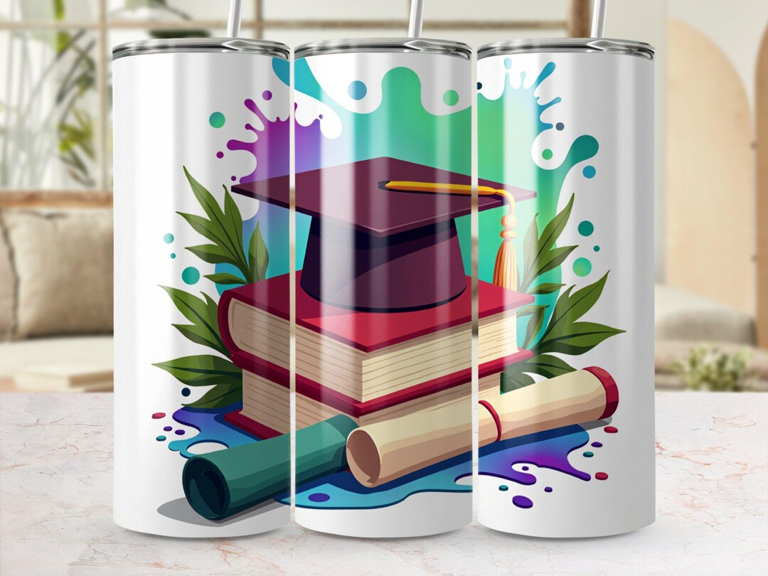 Graduation Cap and Books Digital Tumbler Wrap, 20oz Skinny Straight and ...