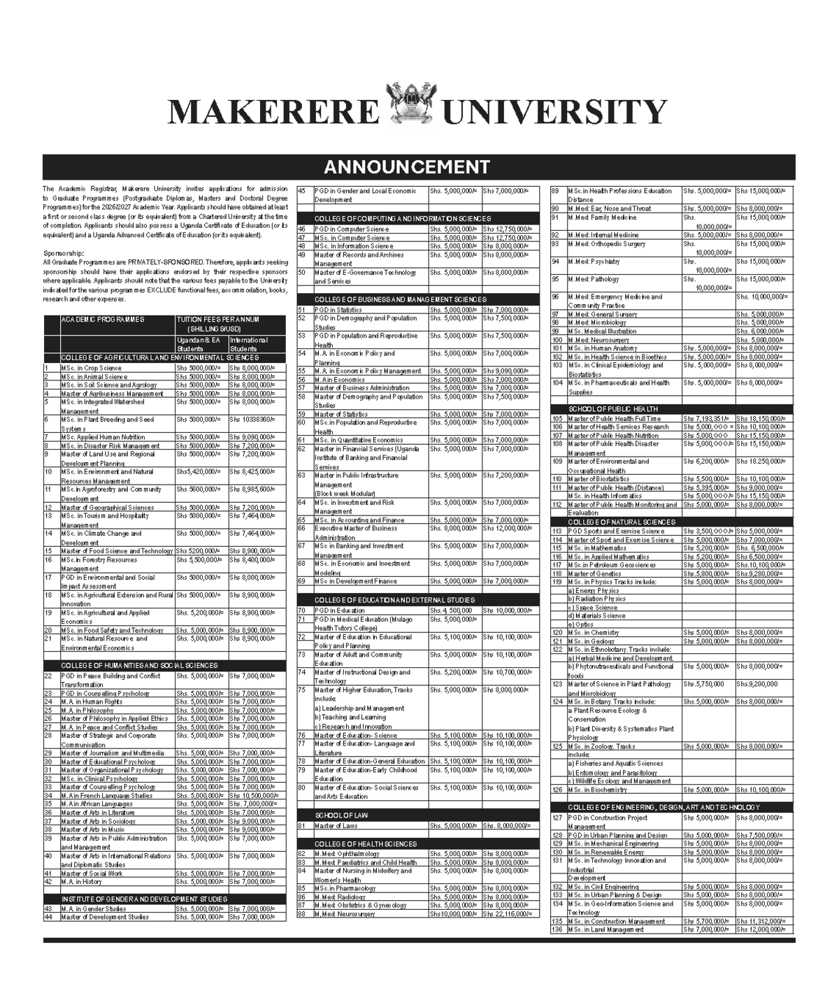 Makerere University Graduate Programmes Admission 2026-2027 - Studocu