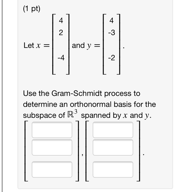 1 pt 2 3 let x and y 2 use the gram schmidt process to determine an ...