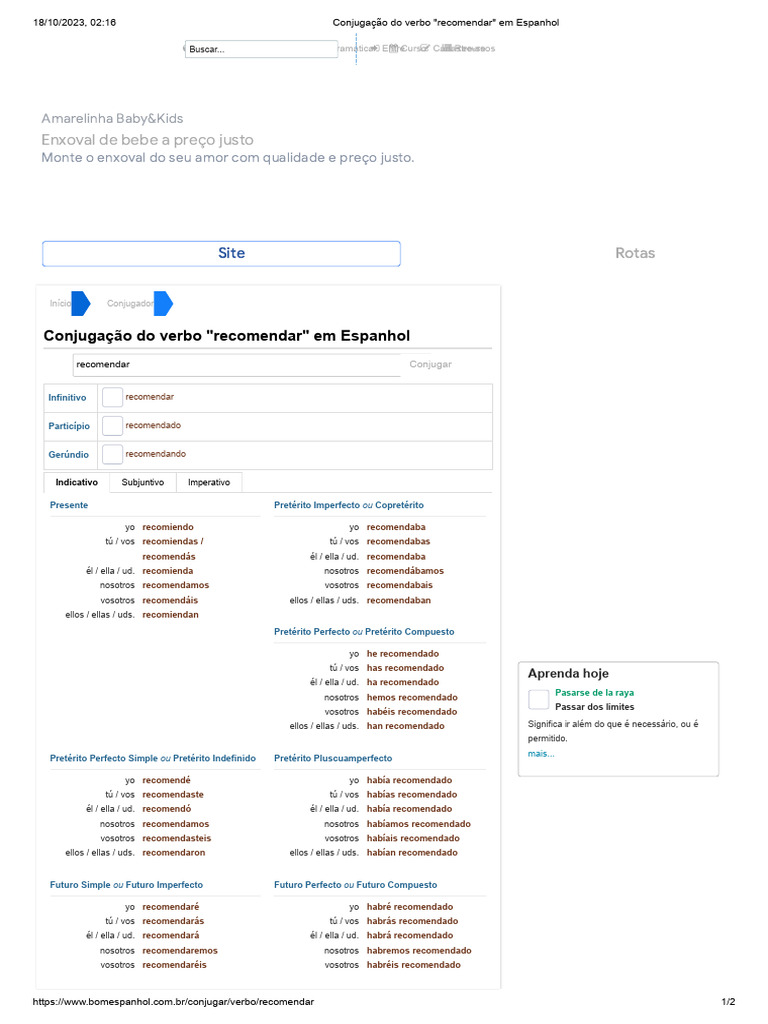 Conjugação Do Verbo - Recomendar - em Espanhol | PDF | Gramática ...