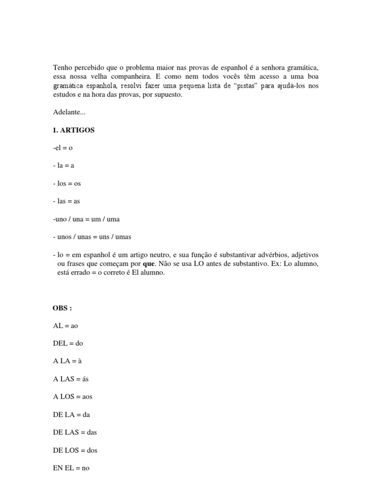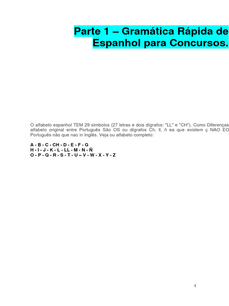 Parte 1 - Gramática Rápida de Espanhol para Concursos | PDF | Espanhol ...