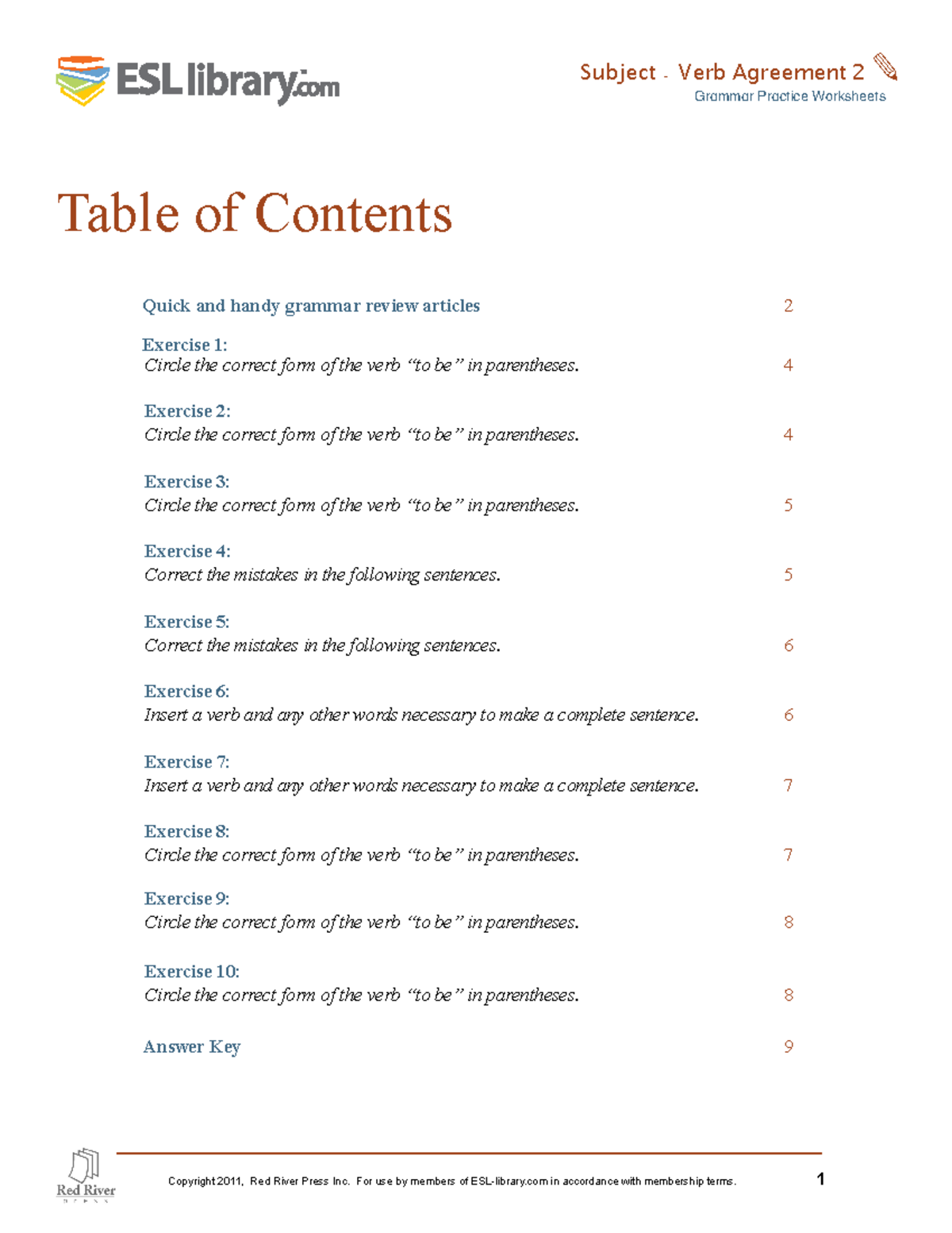 Subject verb agreement 10 - Table of Contents Quick and handy grammar ...