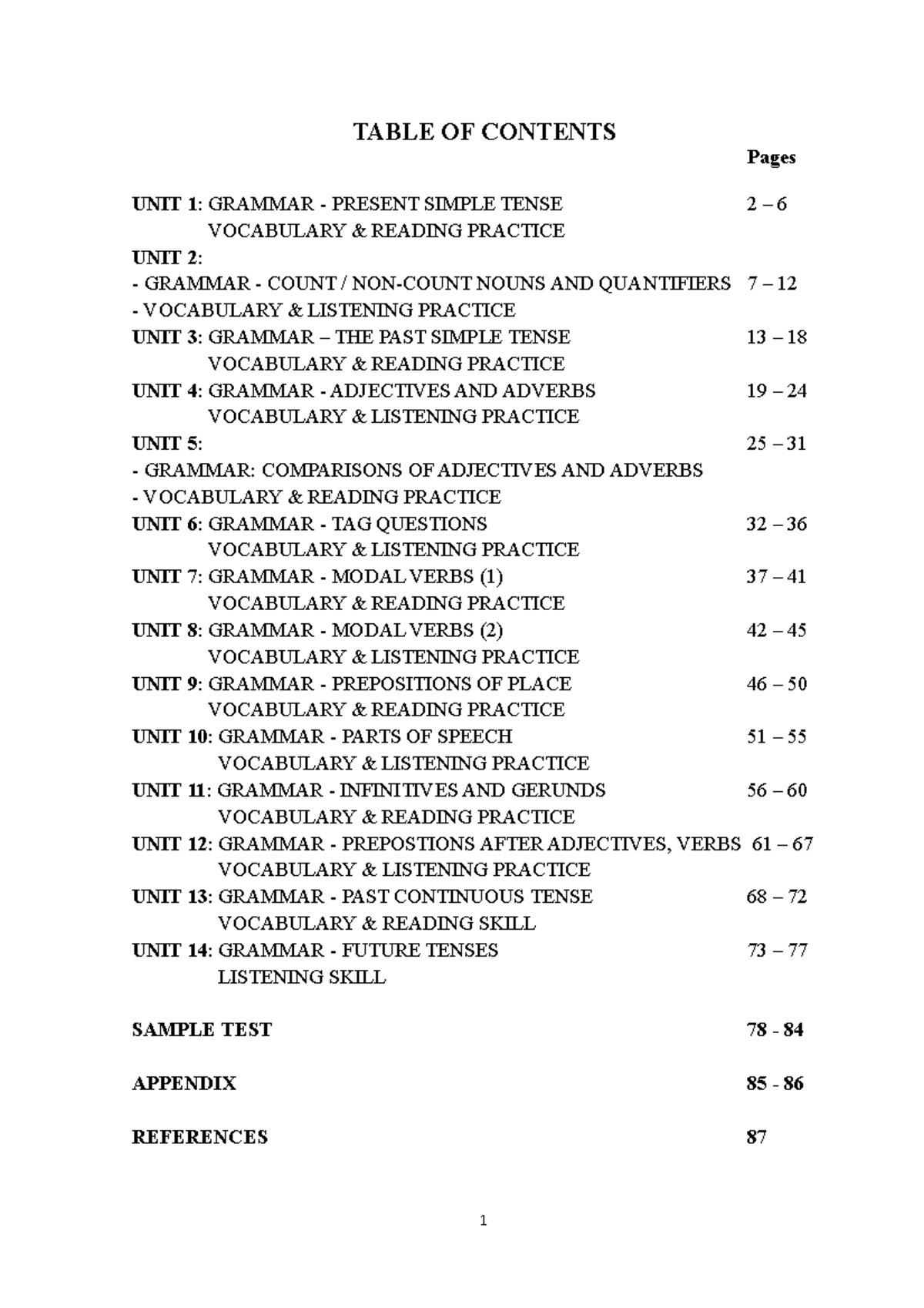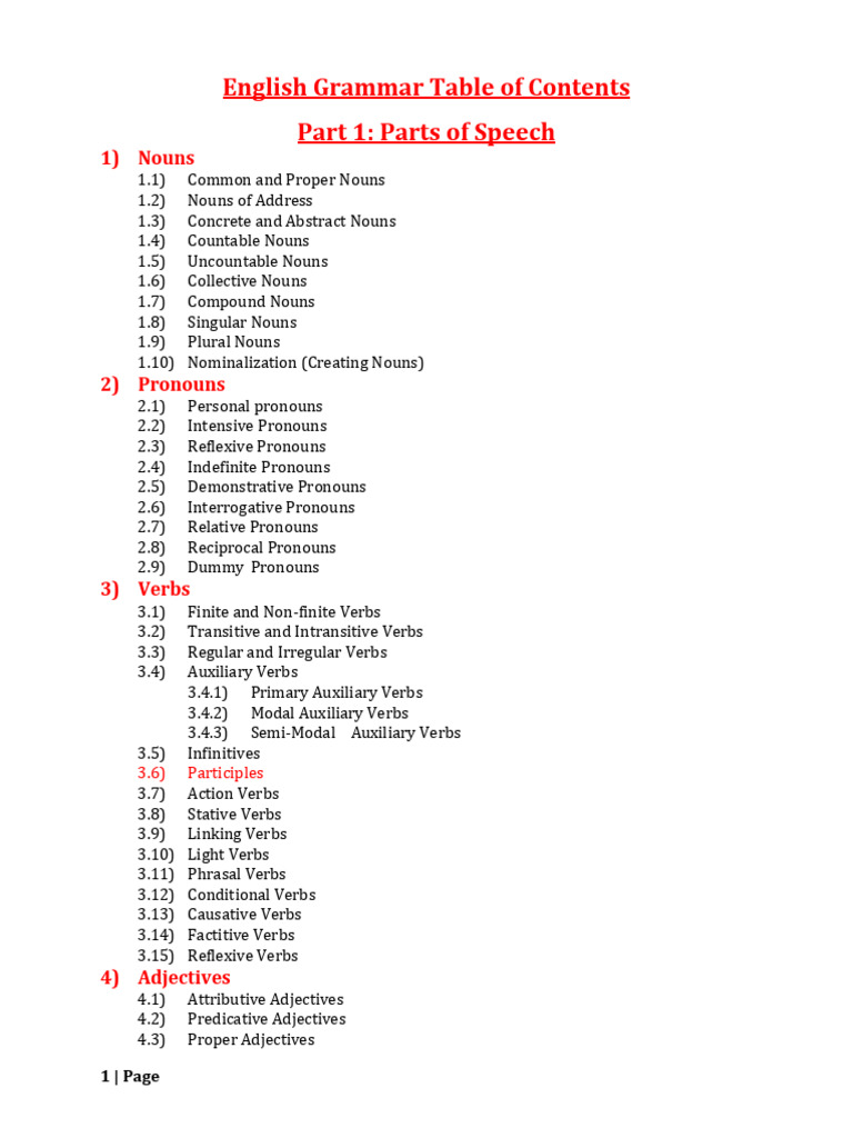 English Grammar Table of Contents 000111 | PDF | Verb | Grammatical Tense