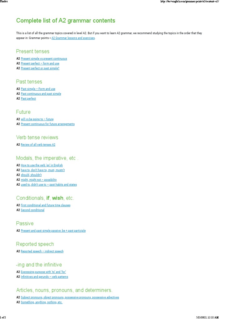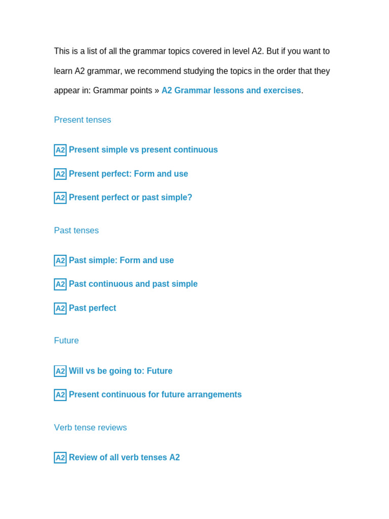 A2 Grammar List (CEFR Level A2) - 250606 - 172951 | PDF
