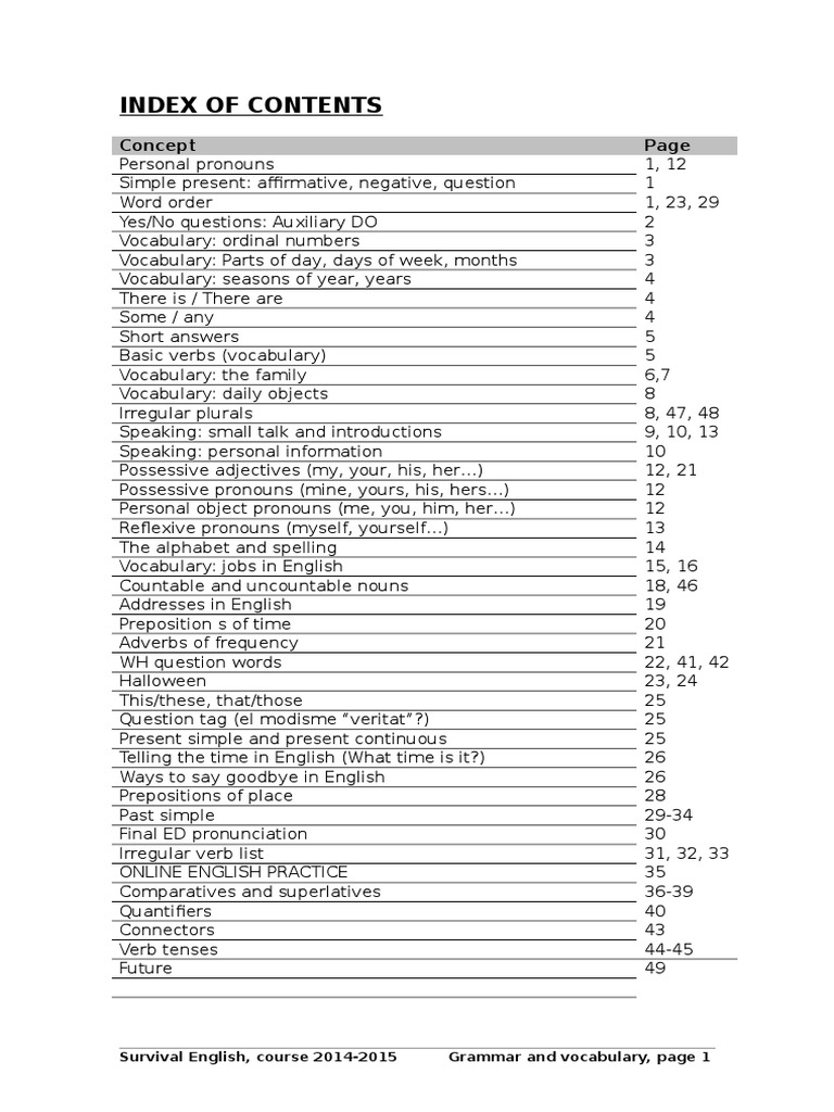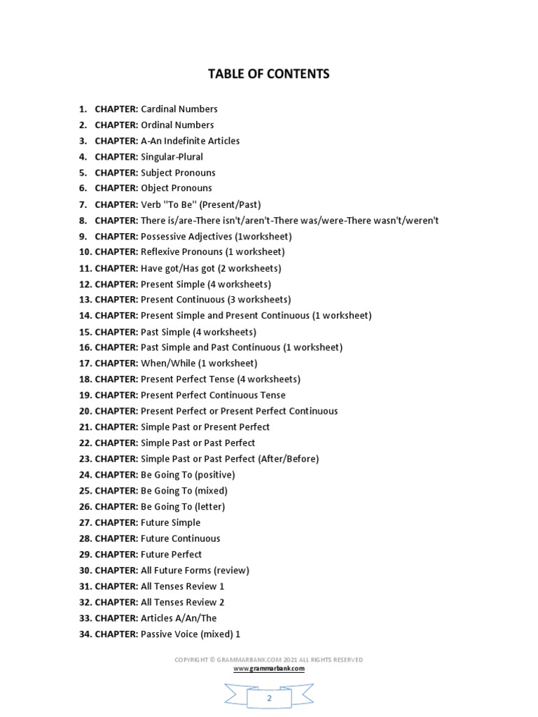 BASIC GRAMMAR CONTENTS: English ESL worksheets pdf & doc