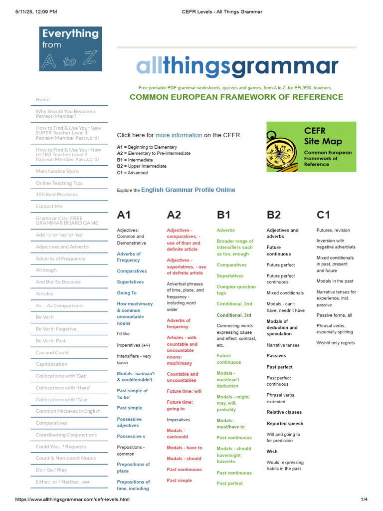 CEFR Grammar Resources A to Z | PDF | Verb | Semantic Units