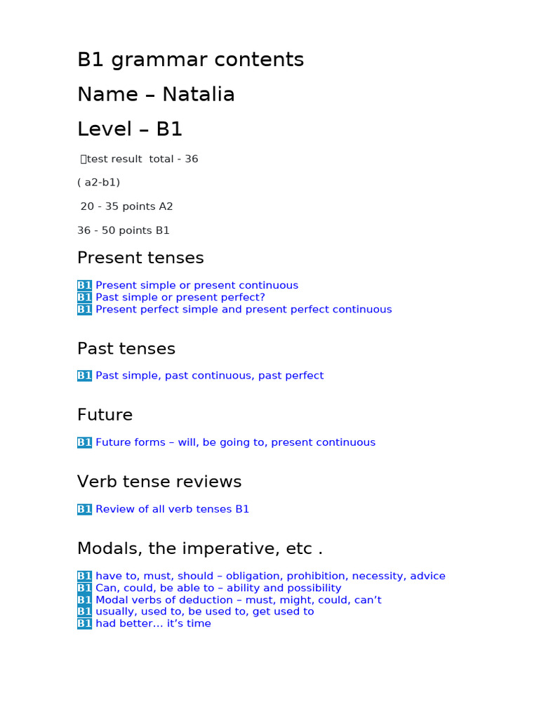 B1 Grammar Contents Overview | PDF | Verb | Syntax