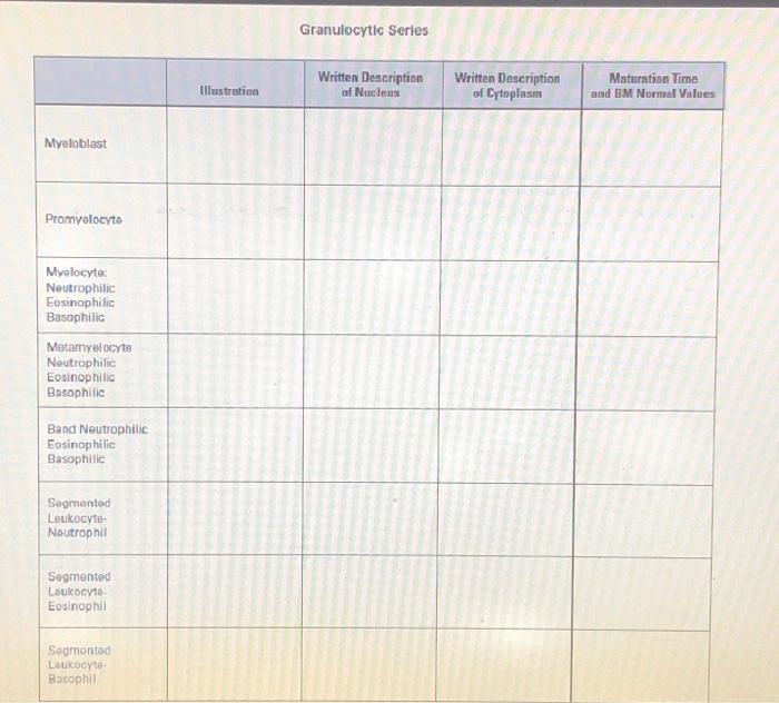 Solved Chapter 1 Study Sheet PART I: BLOOD CELL MATURATION | Chegg.com