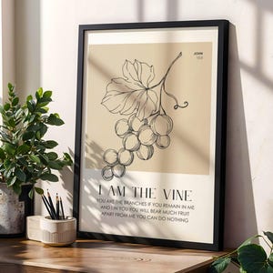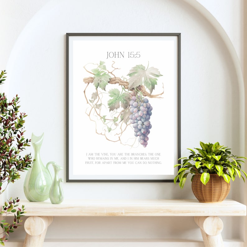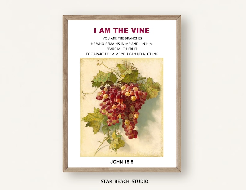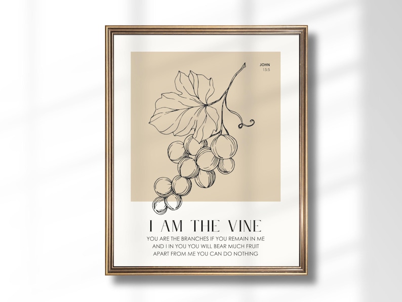 John 15:5 I Am the Vine Bible Verse Print Grape Vine Christian Wall Art ...