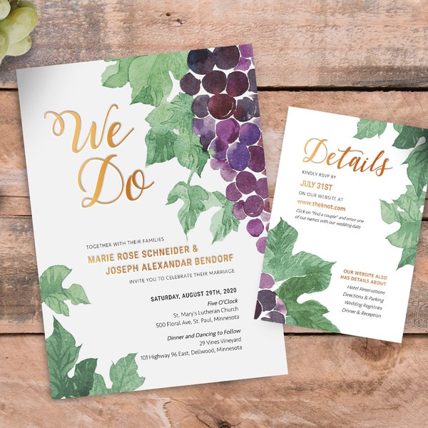 Grape Wedding Invitation - Grape Wedding Invitations Set - Vineyard ...