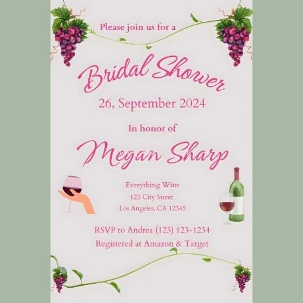 Bridal Shower Modern Grape Vine Invitation Template, Modern Grape Vine ...