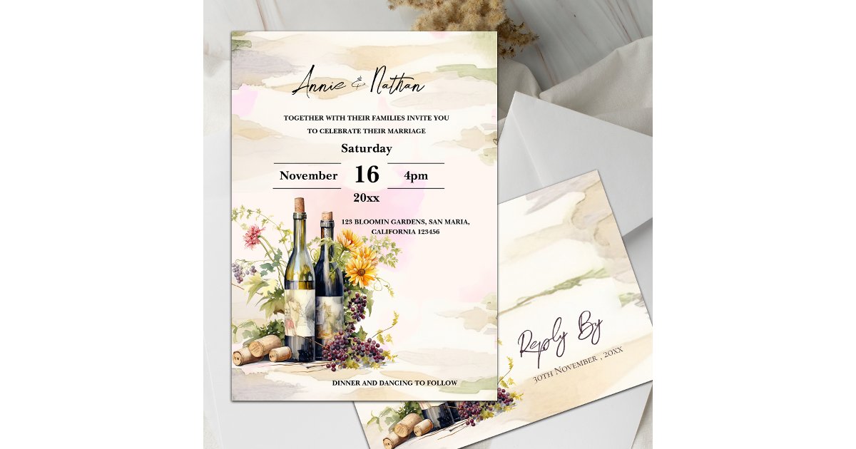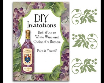 Wine Invitation, Vineyard Wedding Invitation, Grapevines, Grapes and ...