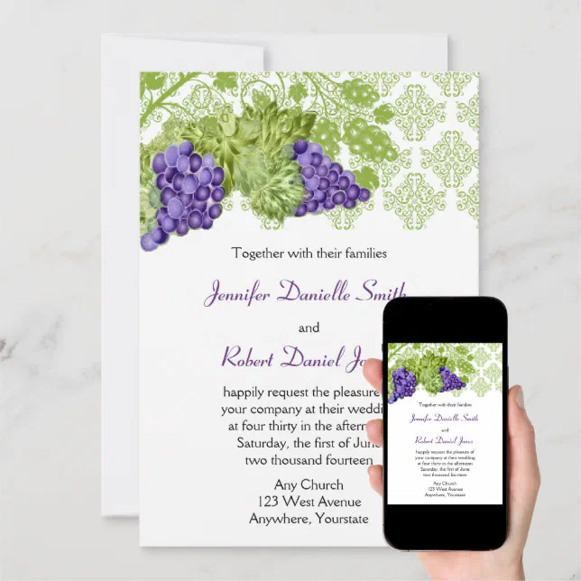Grape Vines Wedding Invitation | Grape vine wedding, Wedding ...