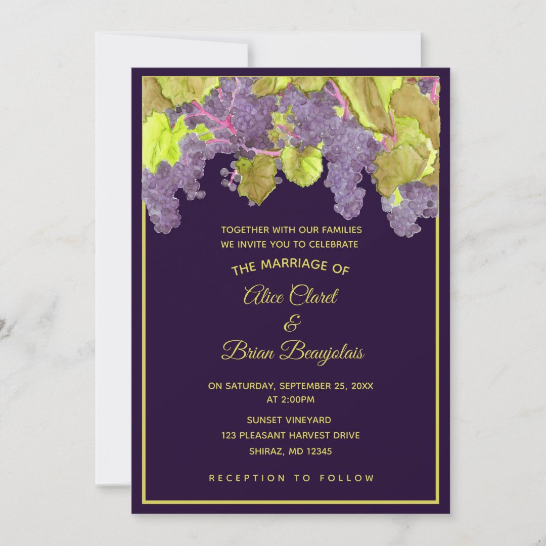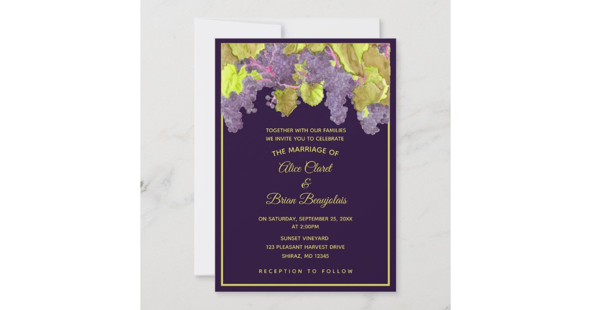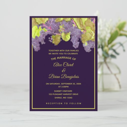 Grapevine Vineyard Purple Wedding Invitation | Zazzle
