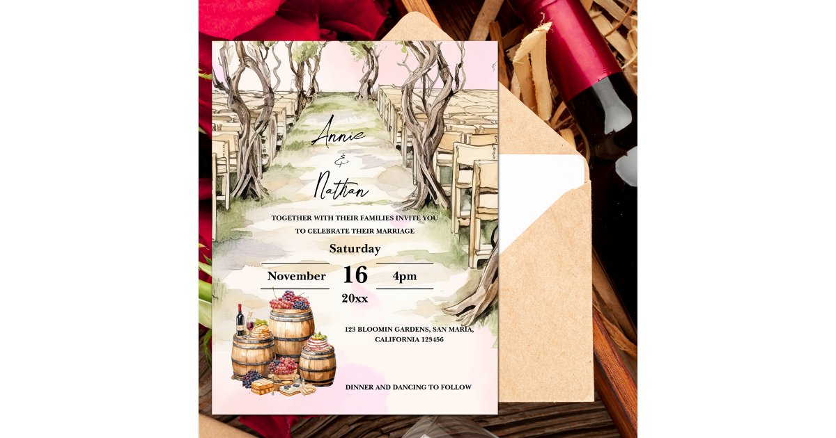 Glorious Grapevine Invitation | Winery wedding invitations, Vineyard ...