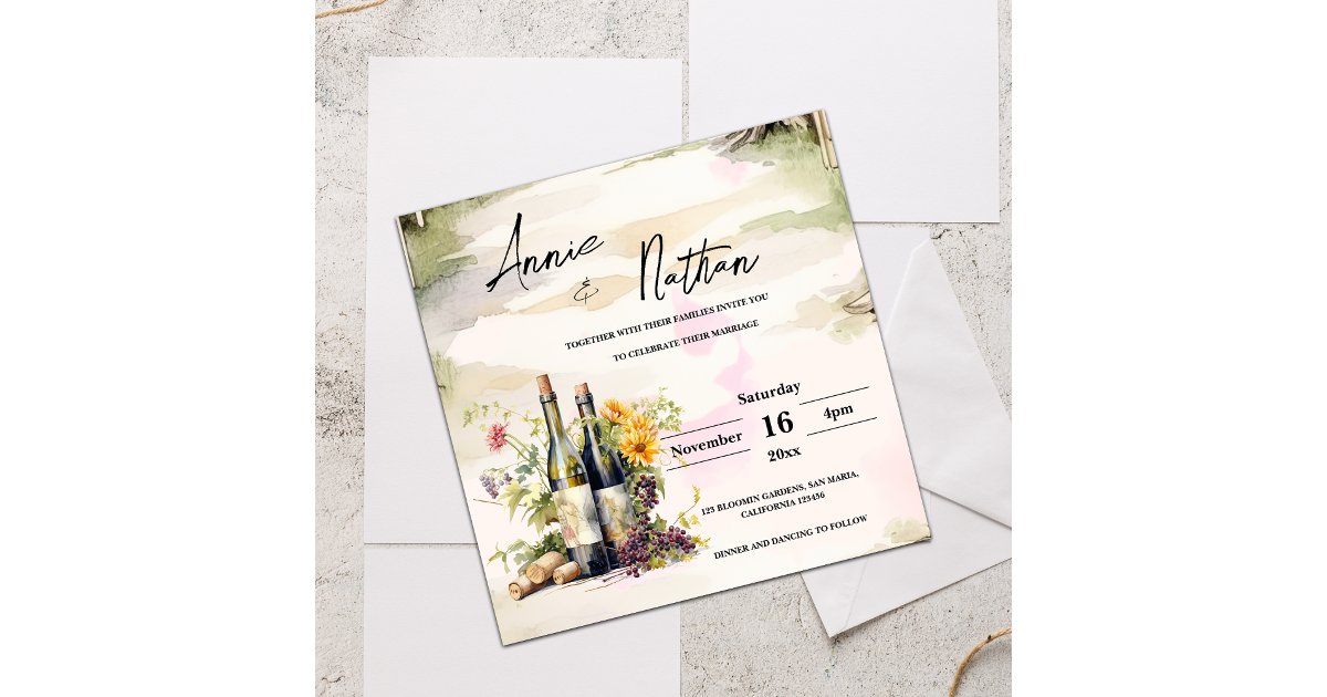 Elegant Chic Watercolor Grapevine Wedding Invitation | Zazzle in 2025 ...