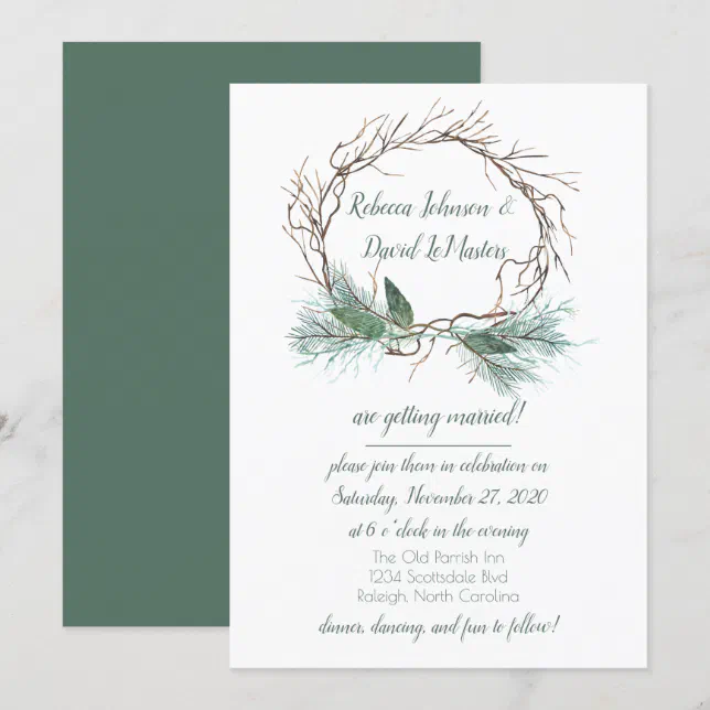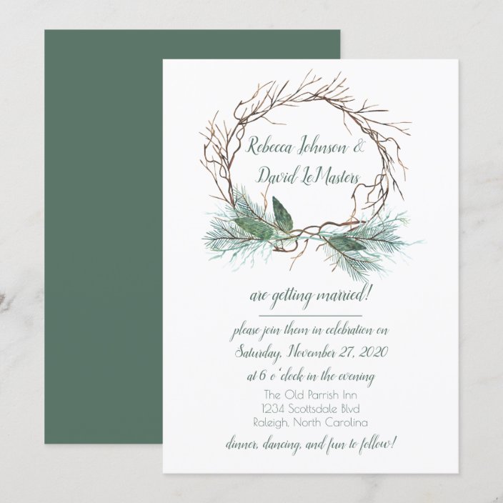 Winter Pine Grapevine Wreath Wedding Invitation | Zazzle