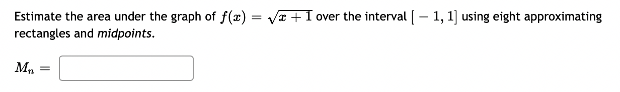 Solved Estimate the area under the graph of f(x) = √x + | Chegg.com