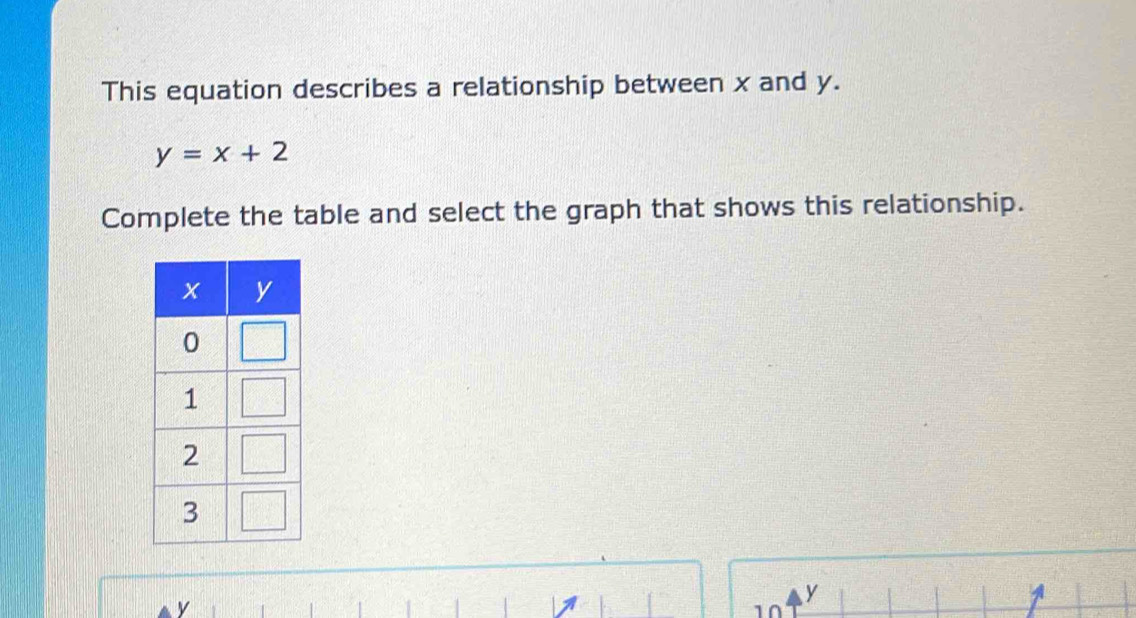 Solved: This equation describes a relationship between x and y. y=x+2 ...