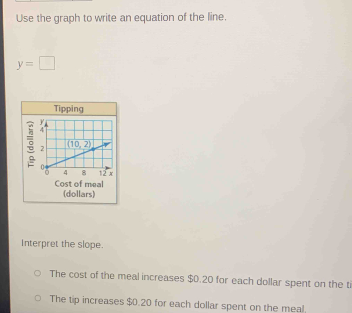 Use the graph to write an equation of the line. y= Tipping g Cost of ...