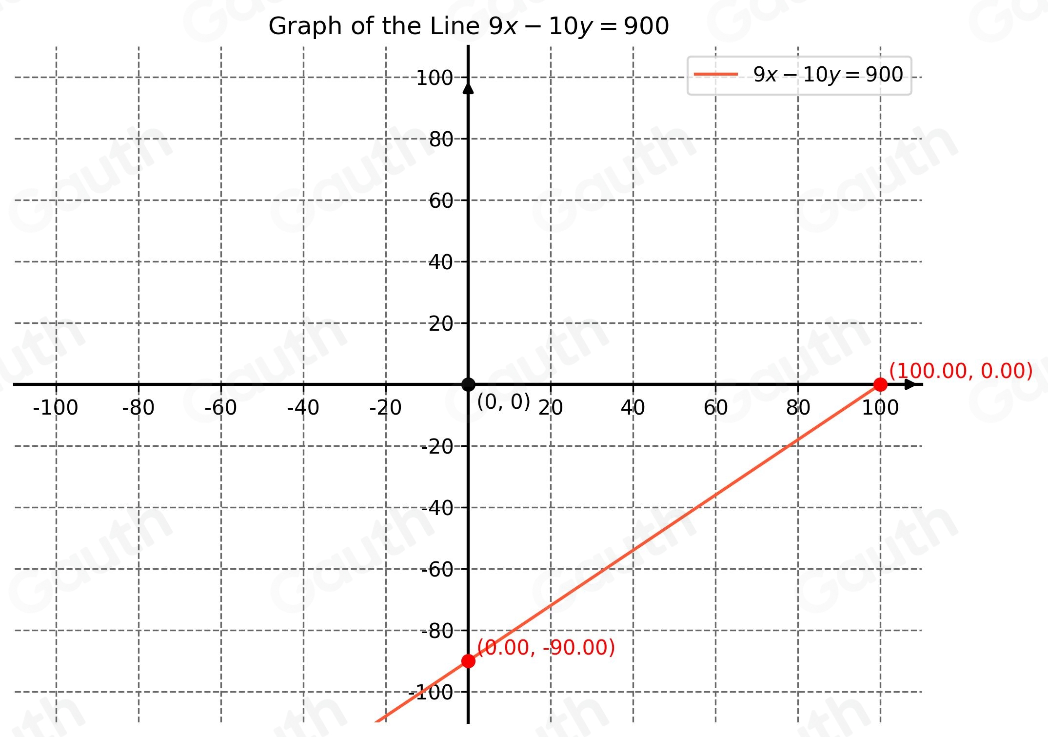 Solved: Graph this line using intercepts: 9x-10y=900 Click to select ...