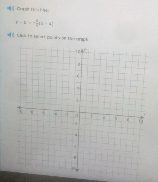 Solved: Graph this line: y-6=- 6/5 (x-4) Click to select points on the ...