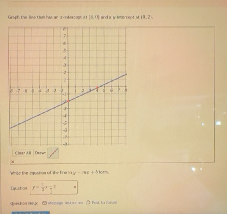 Solved: Graph the line that has an x-intercept at (4,0) and a y ...