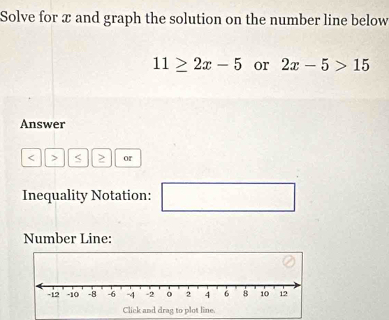 Solved: Solve for x and graph the solution on the number line below ...
