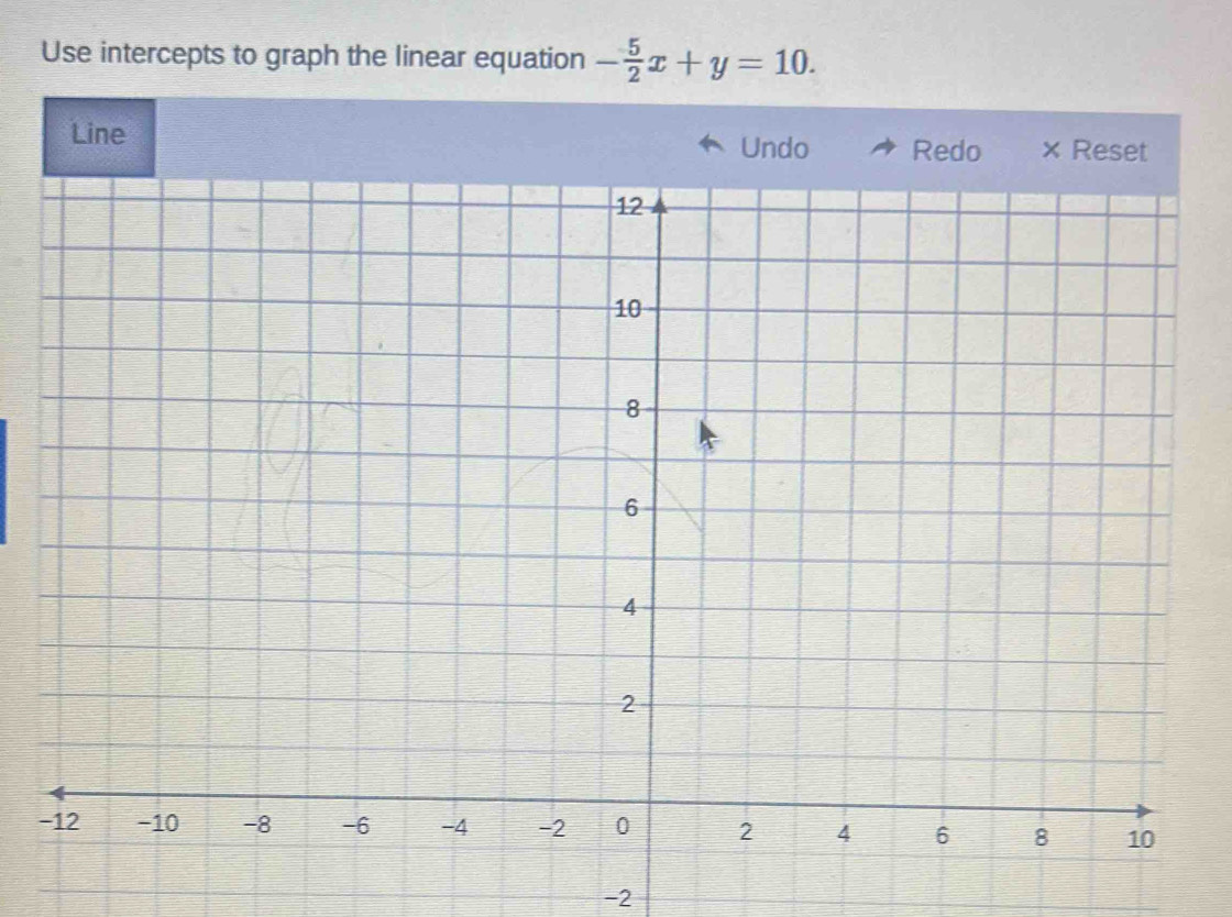 Solved: Use intercepts to graph the linear equation - 5/2 x+y=10. Line ...