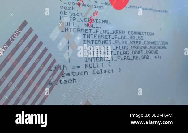 Animation of screen with glitch, data and graph on navy background ...