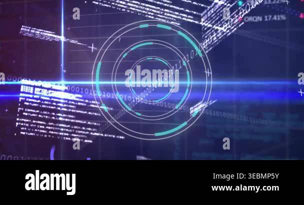 Animation of graphs and diverse data processing on navy digital screen ...