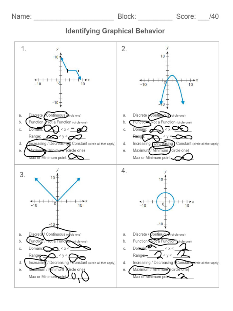 Calculus Graphical Behavior of Functions Fill in the Blank Summary by ...