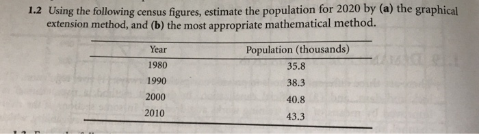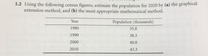 Solved 1.2 Using the following census figures, estimate the | Chegg.com