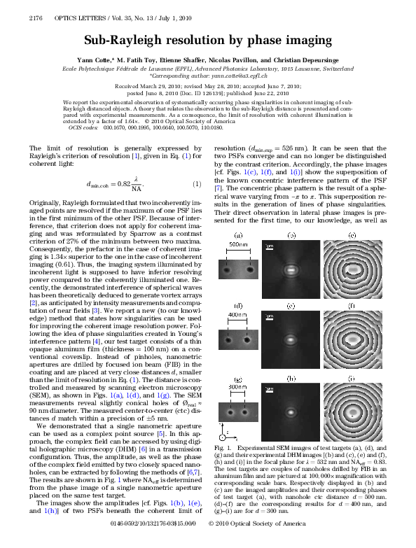 (PDF) Sub-Rayleigh resolution by phase imaging
