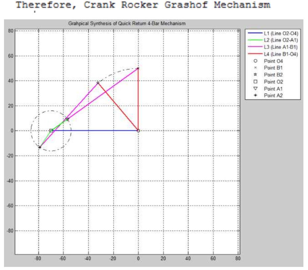 Graphical synthesis of 4-bar quick return mechanism at t.r.
