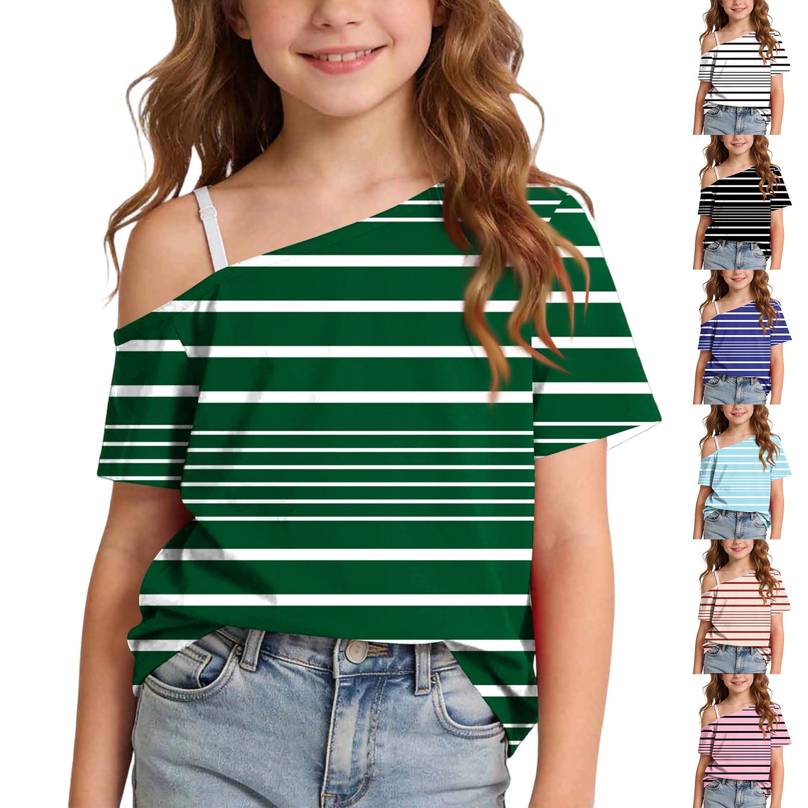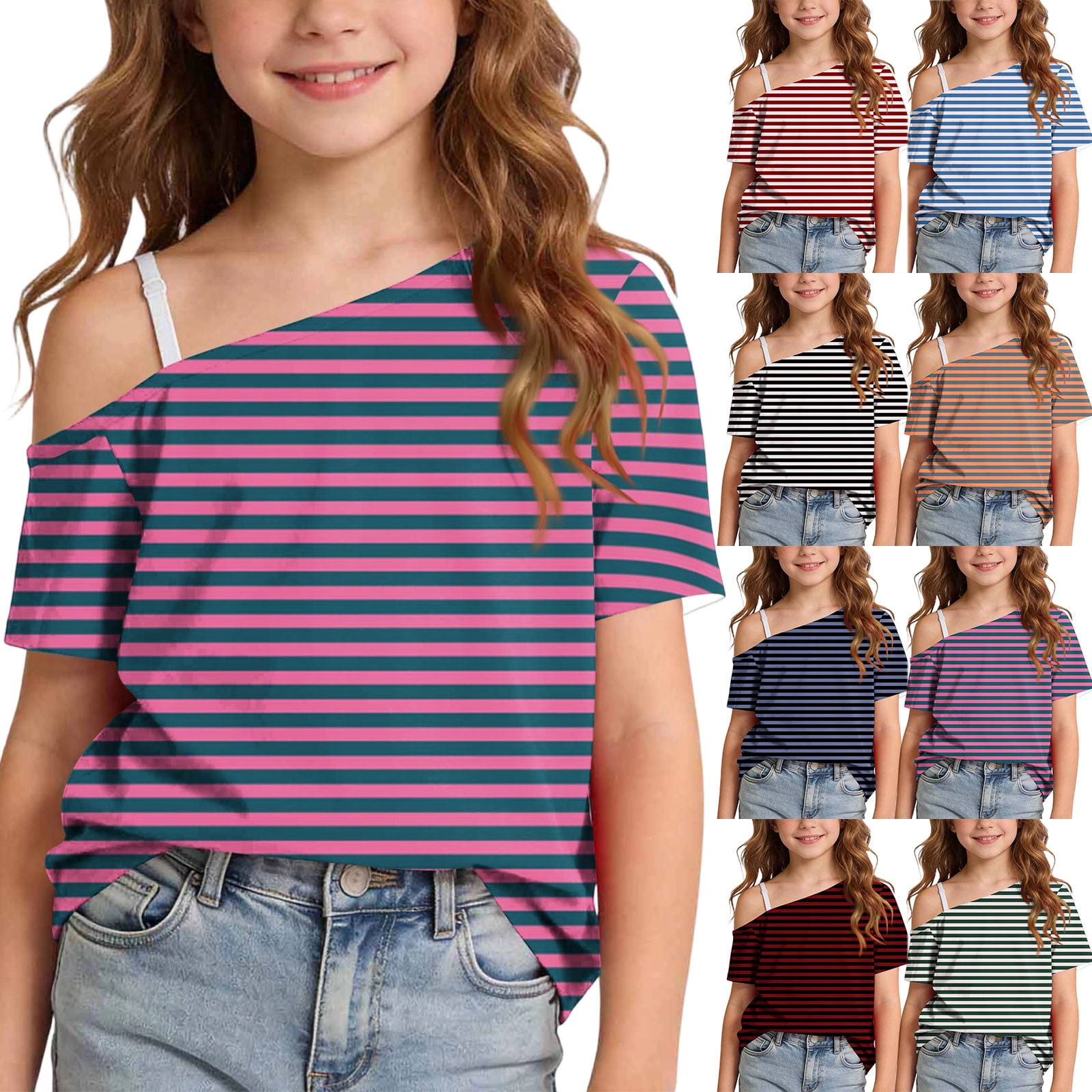 Bovxnpu Girls Off Shoulder Short Sleeve T Shirts Kids Summer Tops Girls ...