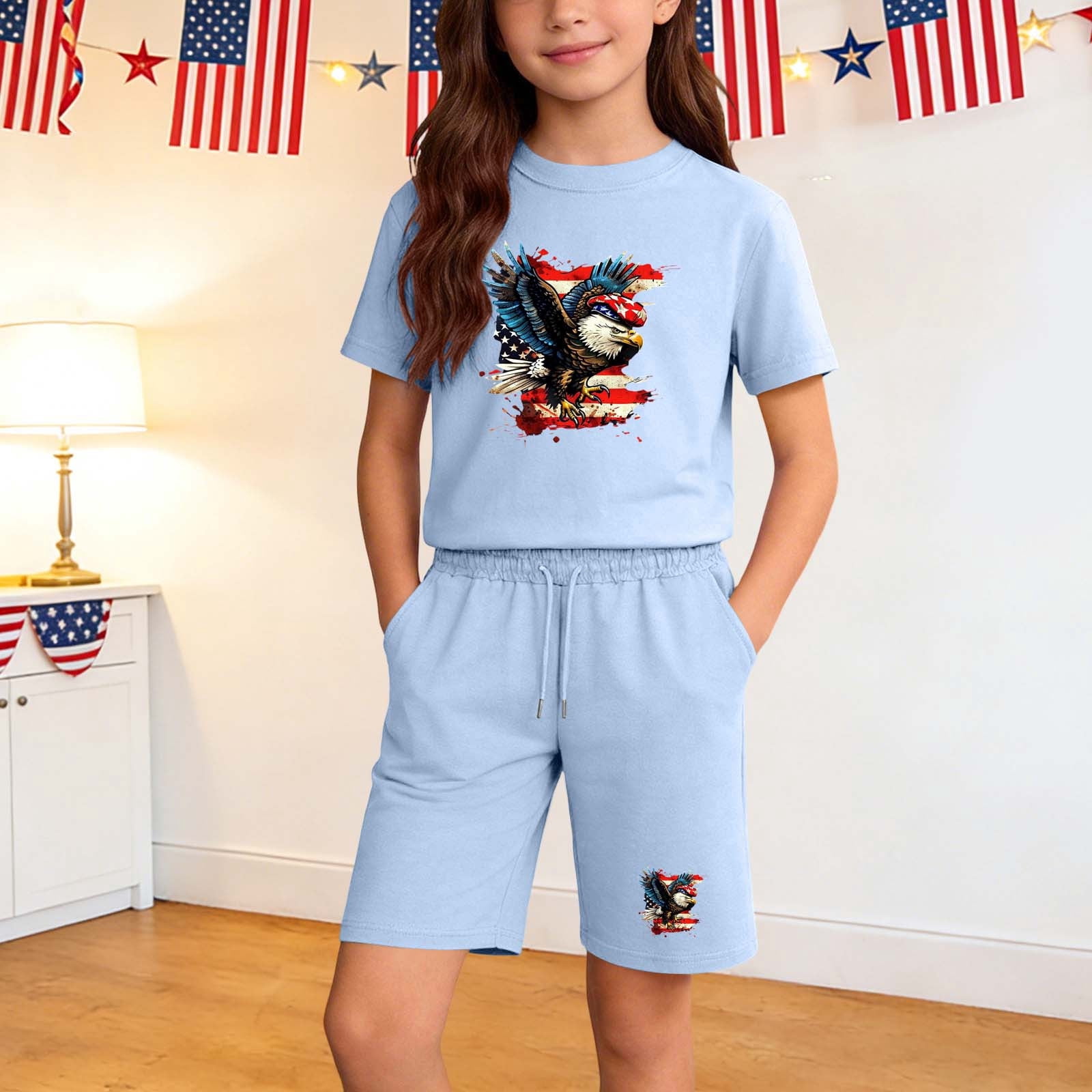 Boys & Girls 3-15Y Trendy Short Set Comfy 2026 Summer 4th of July ...