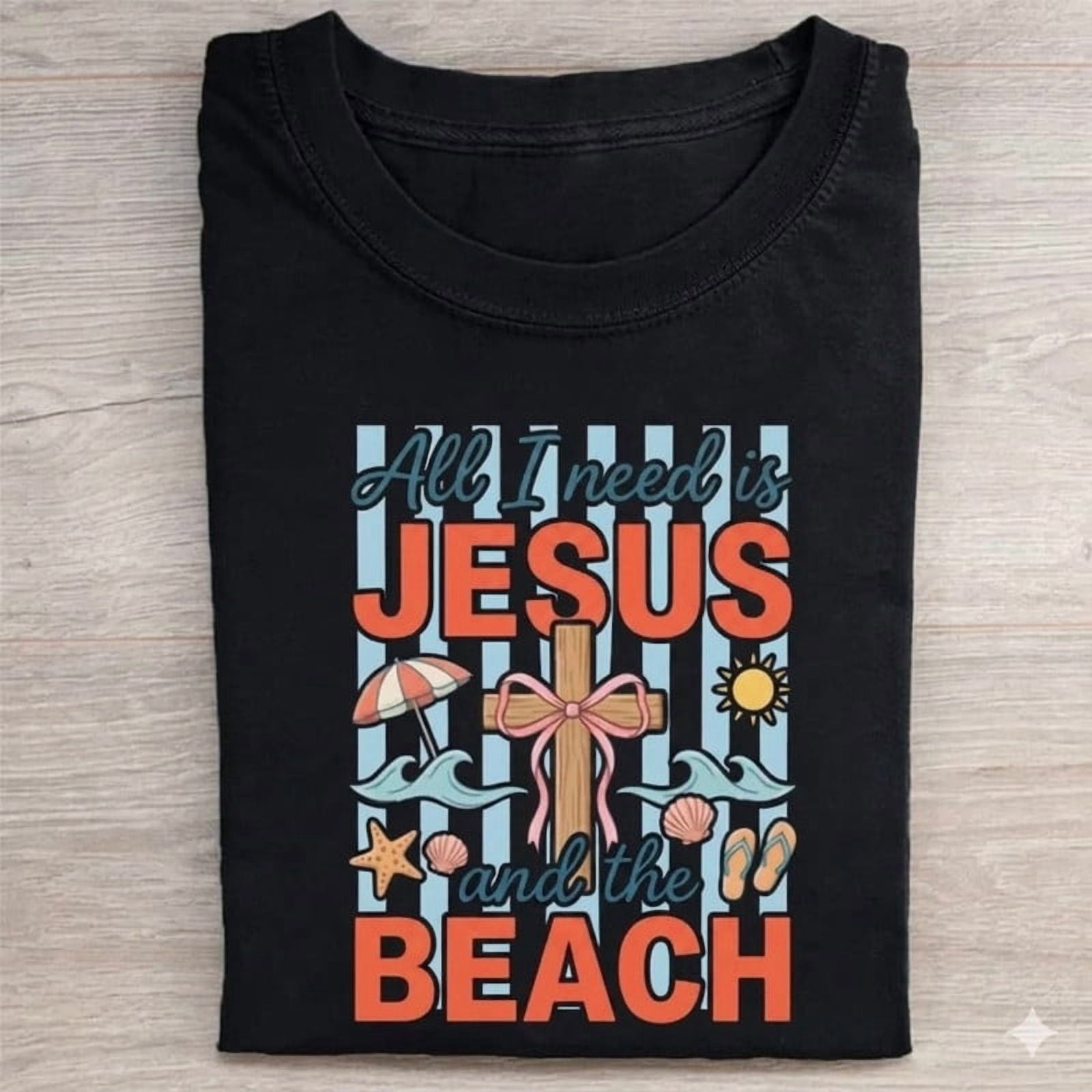 All I Need Is Jesus and the Beach Shirt, Christian Summer Graphic Tee ...