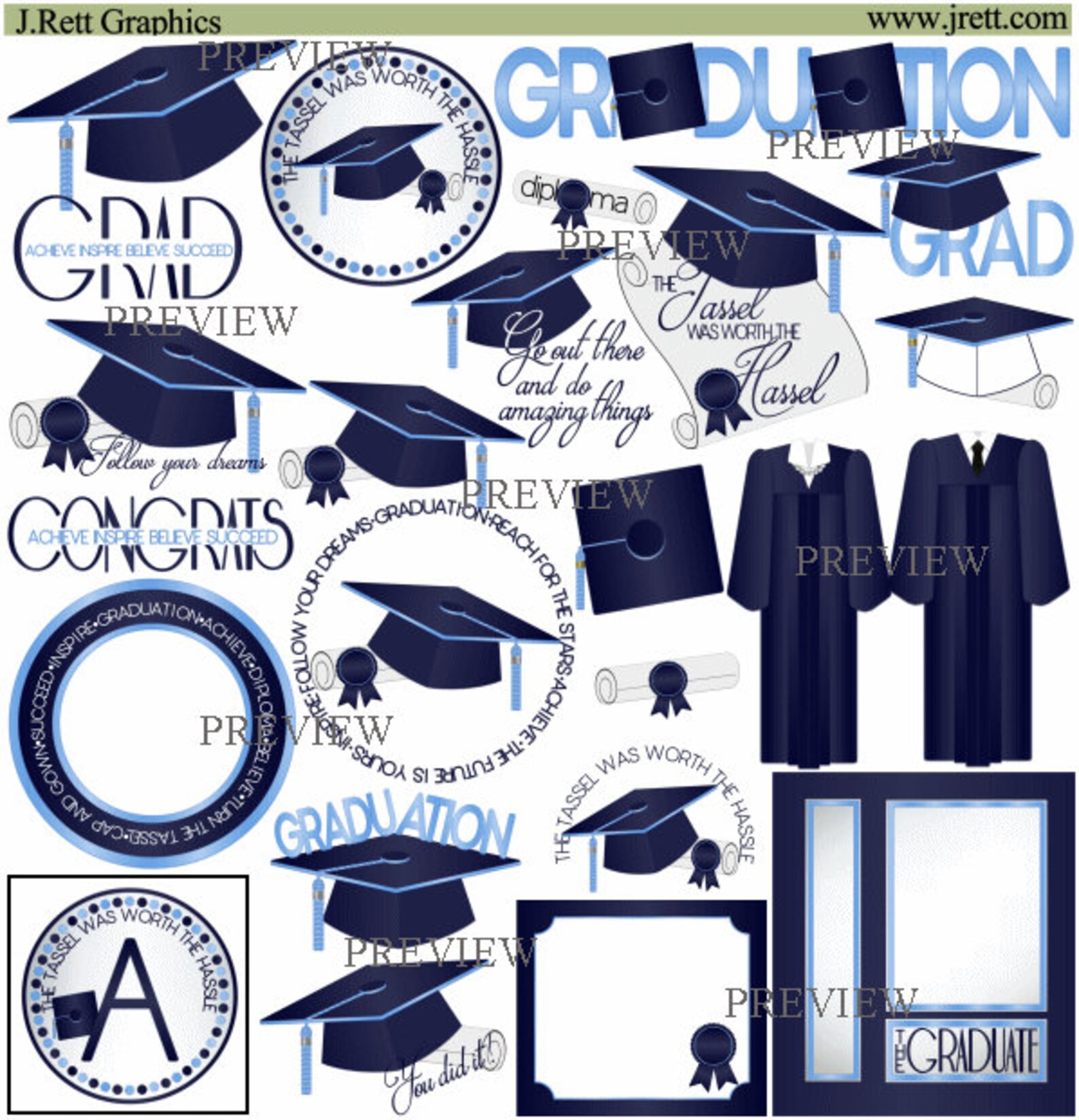 Blue Graduation Clipart, MORE COLORS, Navy, Light Blue, Tassel Clip Art ...
