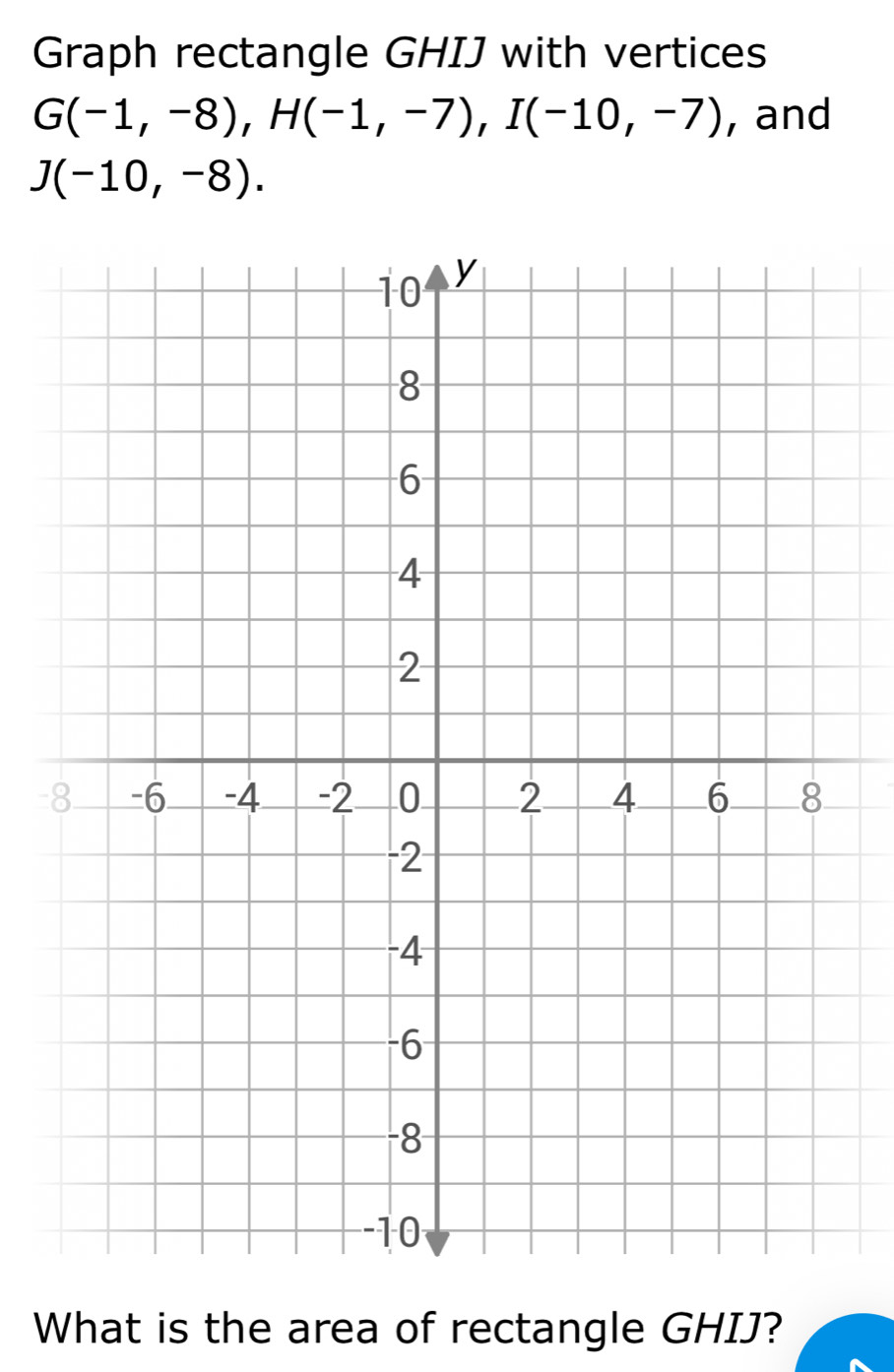 Solved: Graph rectangle GHIJ with vertices G(-1,-8), H(-1,-7), I(-10,-7 ...