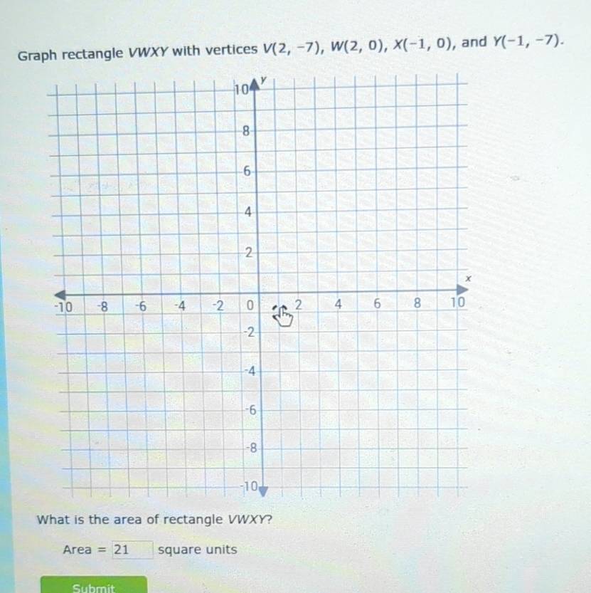 Solved: Graph rectangle VWXY with vertices V(2,-7), W(2,0), X(-1,0 ...