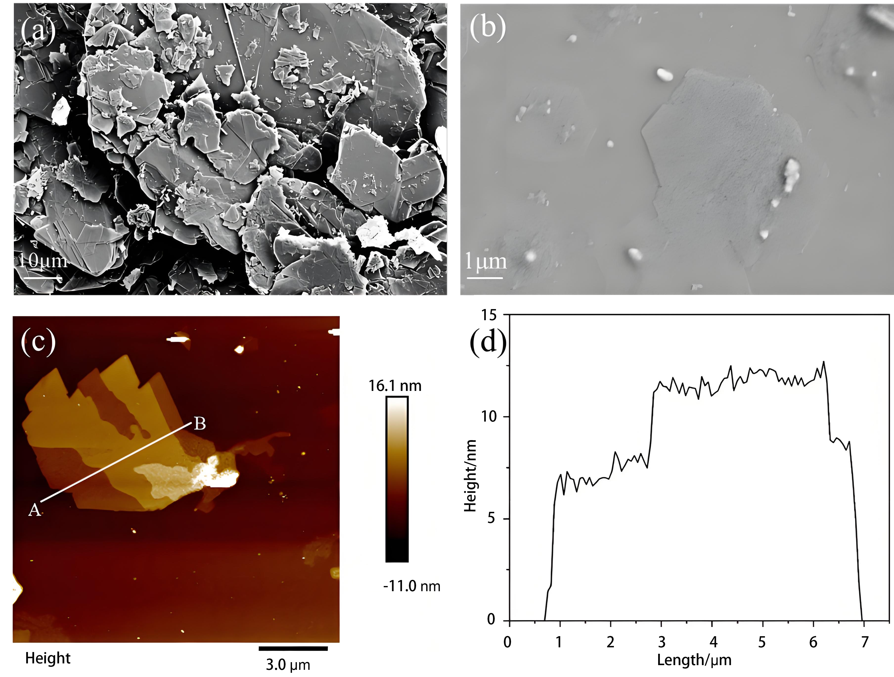 | (A) An AFM image of exfoliated graphene with corresponding height ...
