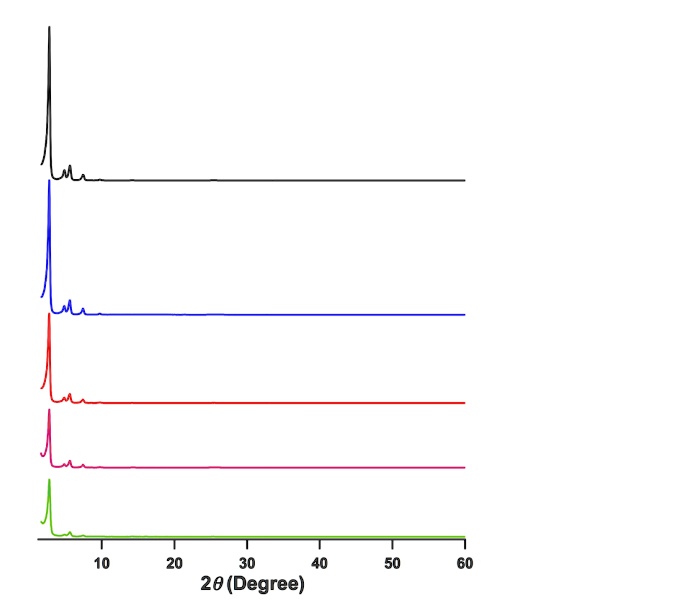 Comparison of XRD patterns calculated from cif files (black) and ...