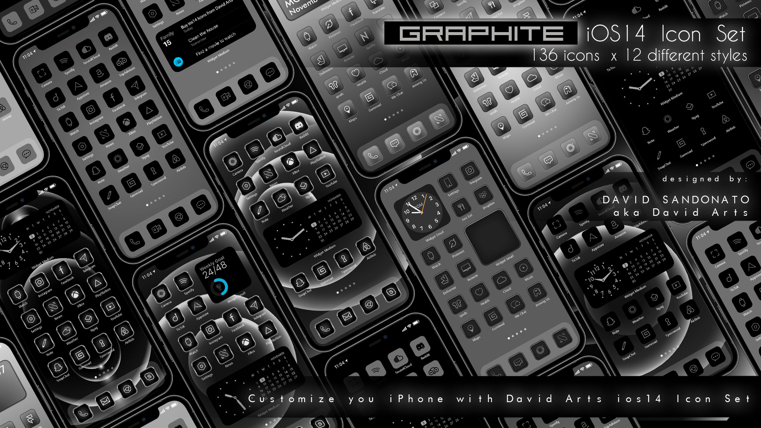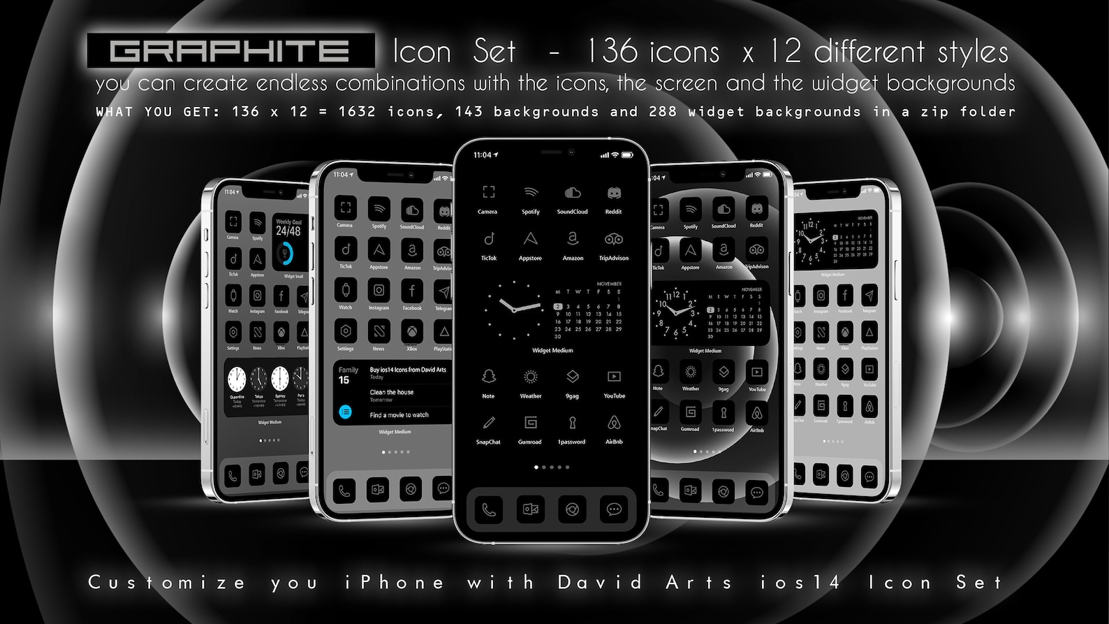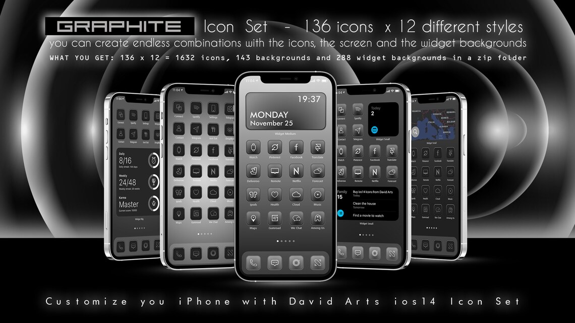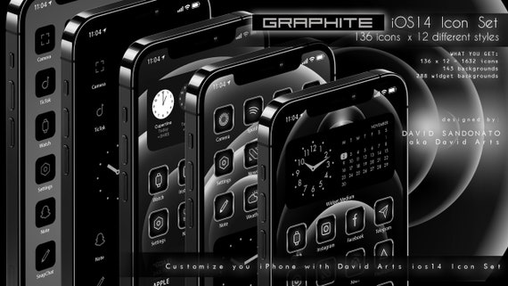 Graphite iOS14 Icon Set 1632 Icons 12 different Styles iPhone | Etsy