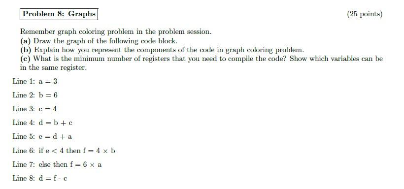 Solved a Problem 8: Graphs (25 points) Remember graph | Chegg.com